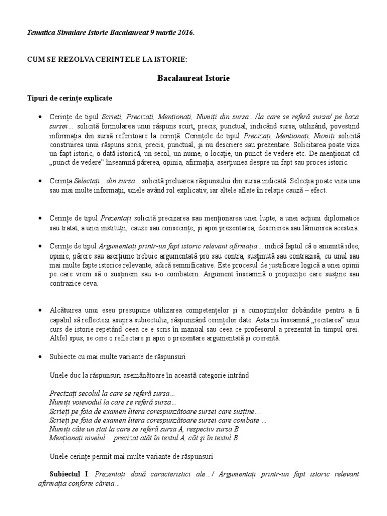 Bac 2016 Subiectul Si Baremul La Istorie Clasa A Xii A Portal Mytex știri Brașov