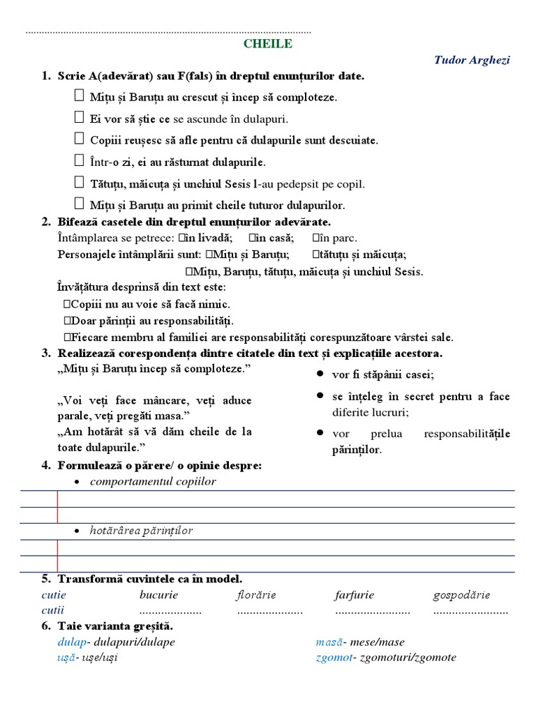 Cheile Dupa Tudor Arghezi Interactive Worksheet