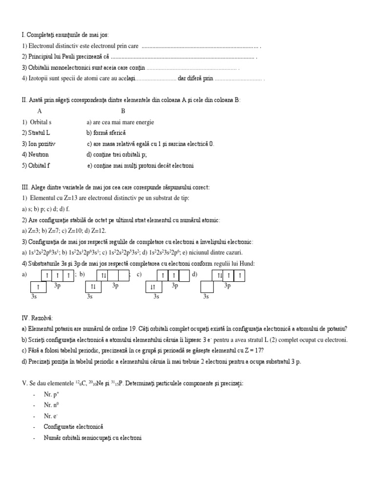 Test Clasa A 9a Structura Atomului Structura Invelisului Electronic Tabelul Periodic Didactic