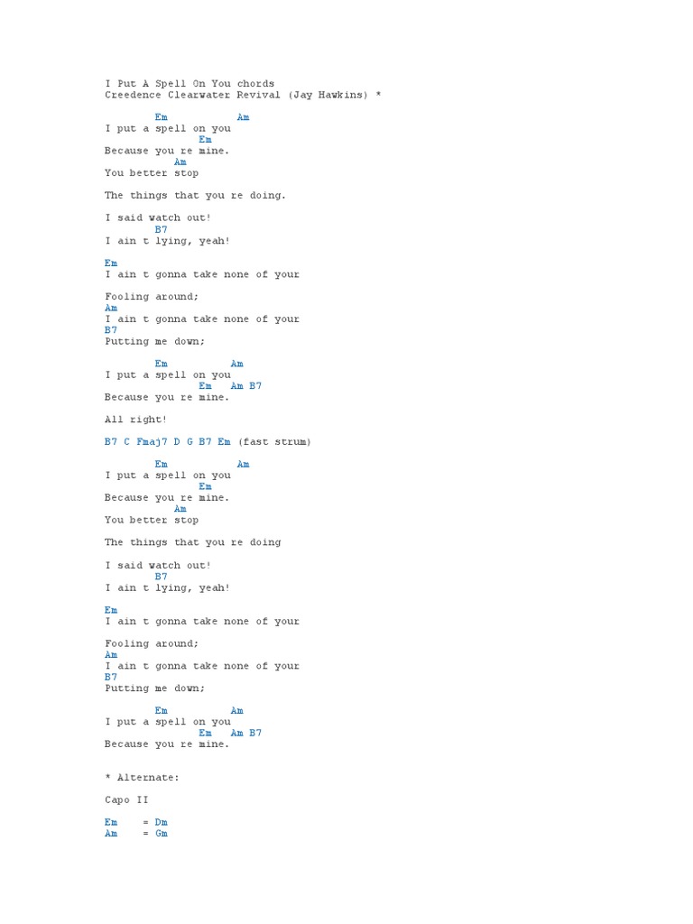 I Put A Spell On You Sheet Music Creedence Clearwater Revival Guitar Chords Lyrics