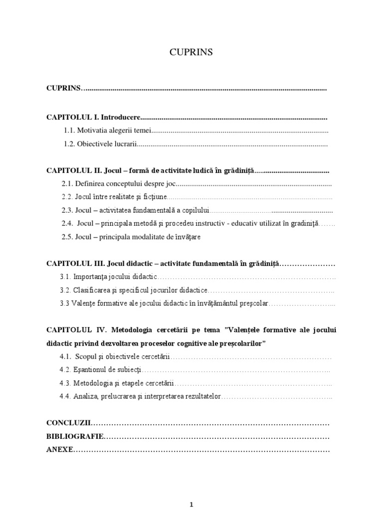 Doc Cuprins Argument Capitolul I Jocul Dominantă A Varstei Prescolare Si Formă De Activitate In Cadrul Procesului De Dezvoltare Cognitivă Diana Olteanu Academia Edu