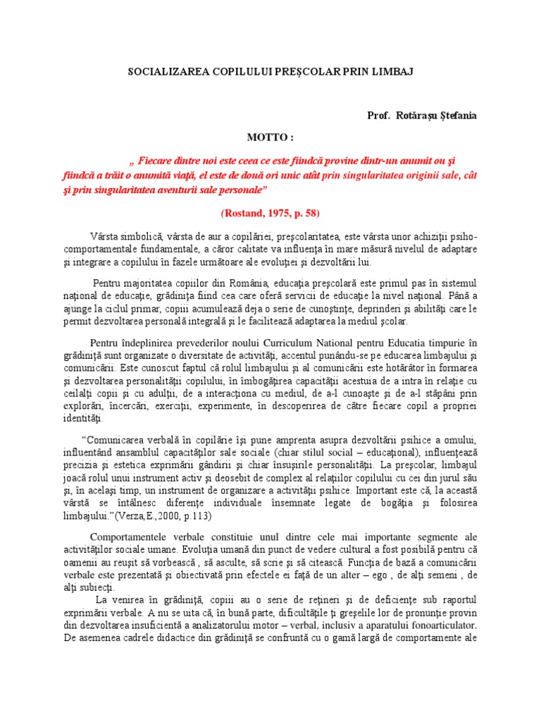 Socializarea Copilului Prescolar Prin Limbaj