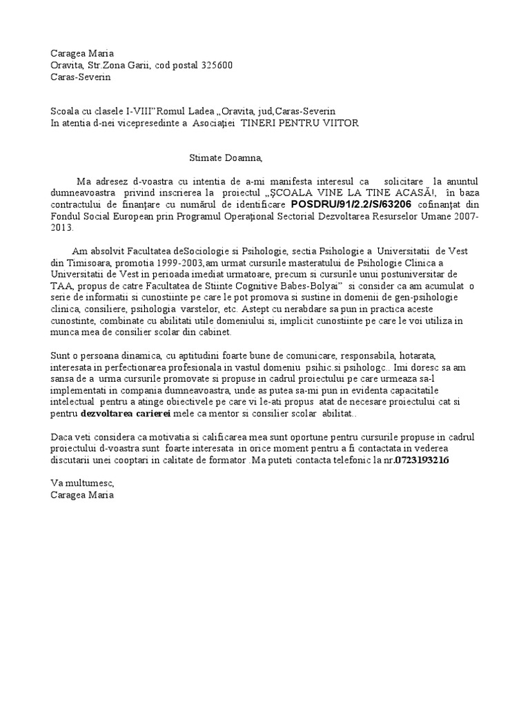 Scrisoare De Intentie Caragea Maria