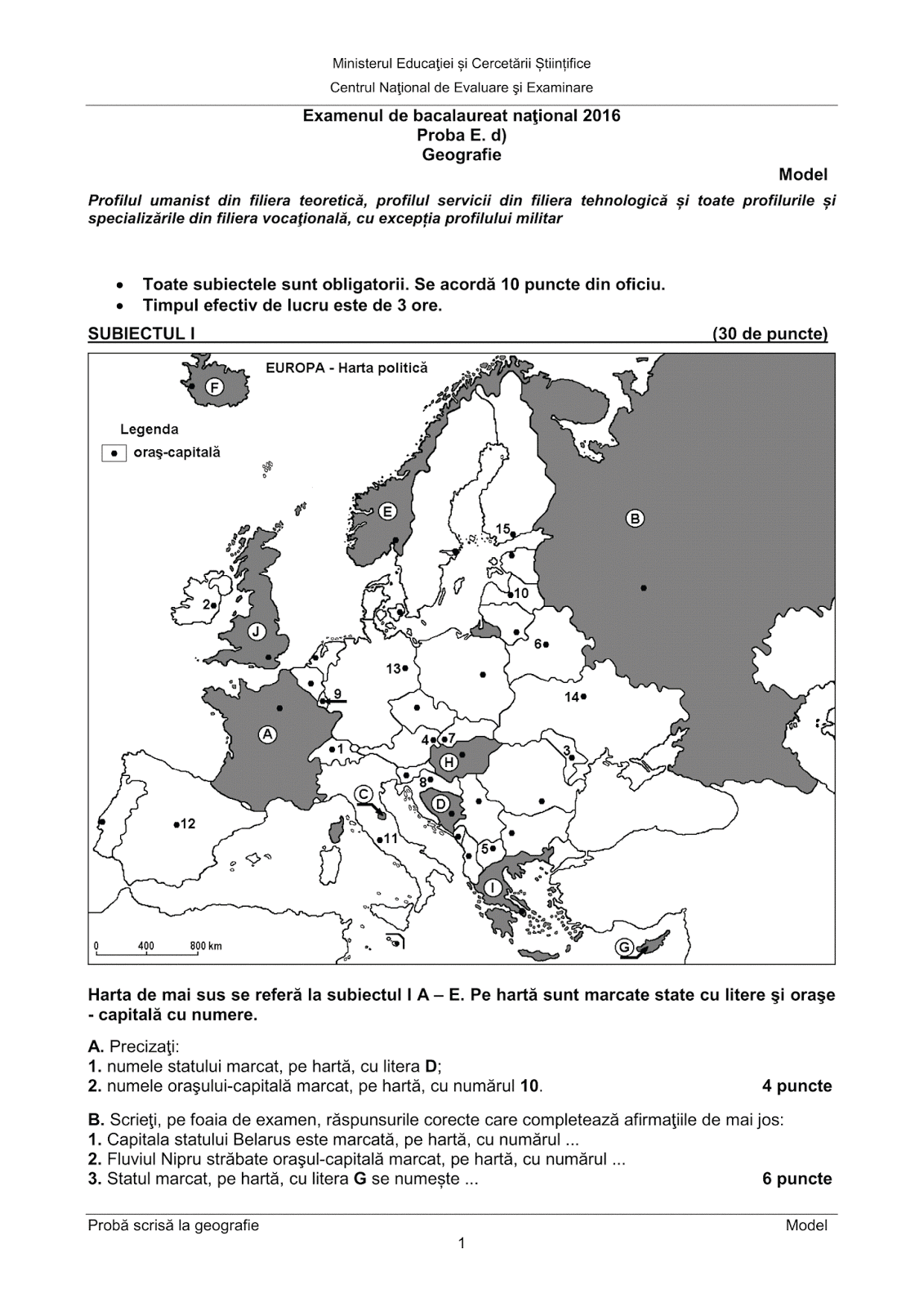 Simulare Bacalaureat 2016 Subiecte Geografie Proba La Alegere A Profilului Si Specializării Romaniatv Net Mobi